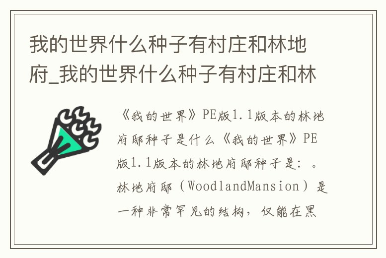 我的世界什么種子有村莊和林地府_我的世界什么種子有村莊和林地府邸的