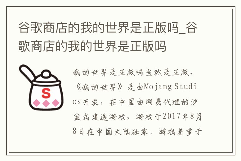 谷歌商店的我的世界是正版嗎_谷歌商店的我的世界是正版嗎