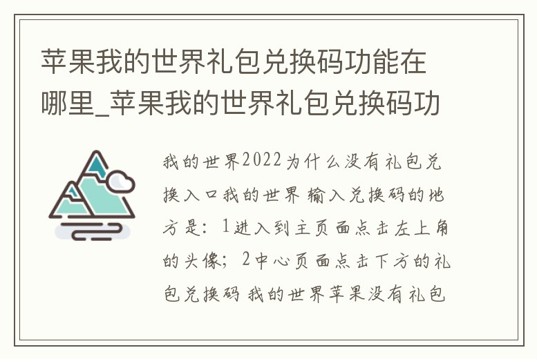 - 蘋果我的世界禮包兌換碼功能在哪里_蘋果我的世界禮包兌換碼功能在哪里打開