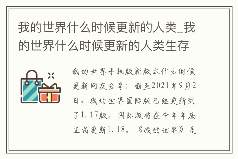 我的世界什么時候更新的人類_我的世界什么時候更新的人類生存