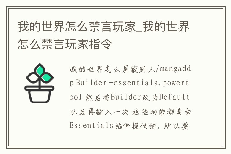 我的世界怎么禁言玩家_我的世界怎么禁言玩家指令