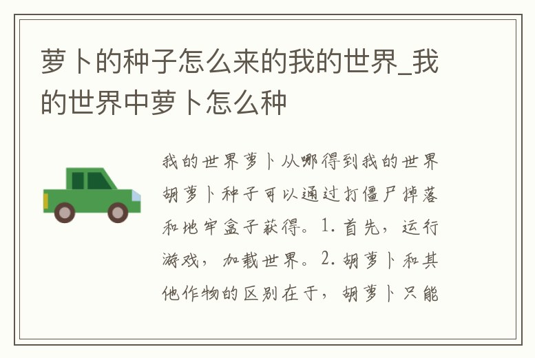 可以在村莊的交易將胡蘿卜變成種子我的世界胡蘿卜變成種子的方法:可以在村莊的交易將胡蘿卜變成種子。