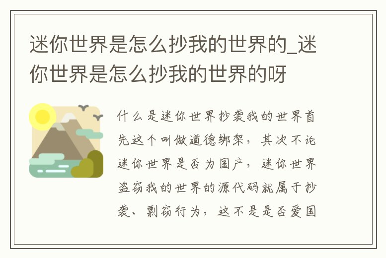 - 迷你世界是怎么抄我的世界的_迷你世界是怎么抄我的世界的呀