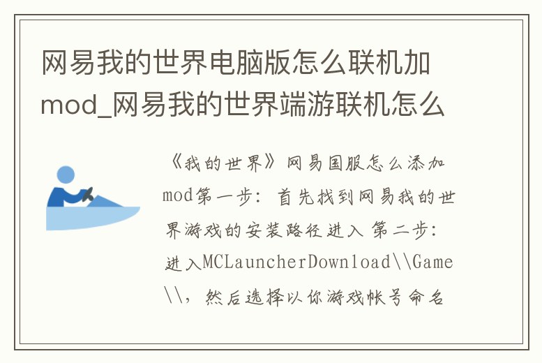 網易我的世界電腦版怎么聯機加mod_網易我的世界端游聯機怎么加mod