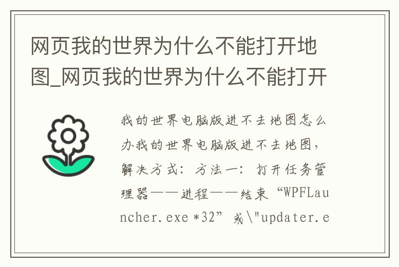 網頁我的世界為什么不能打開地圖_網頁我的世界為什么不能打開地圖模式