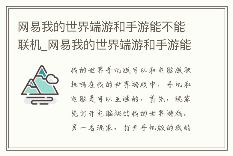 網易我的世界端游和手游能不能聯機_網易我的世界端游和手游能不能聯機一起玩