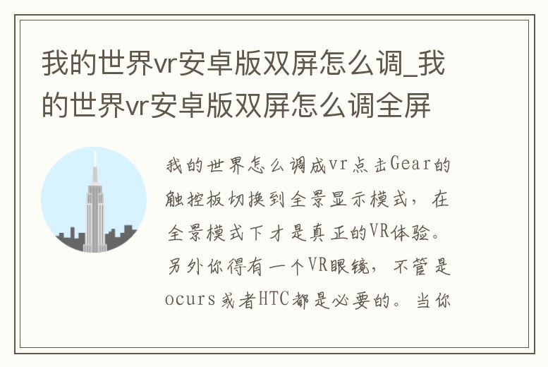 我的世界vr安卓版雙屏怎么調_我的世界vr安卓版雙屏怎么調全屏