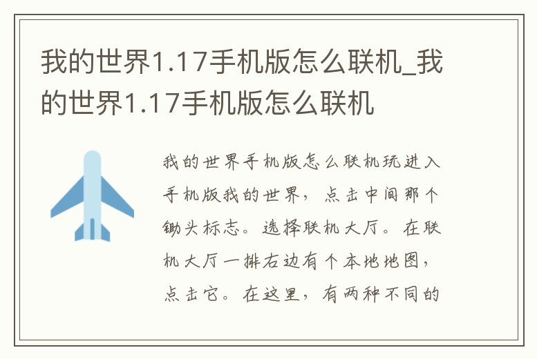 - 我的世界1.17手機(jī)版怎么聯(lián)機(jī)_我的世界1.17手機(jī)版怎么聯(lián)機(jī)