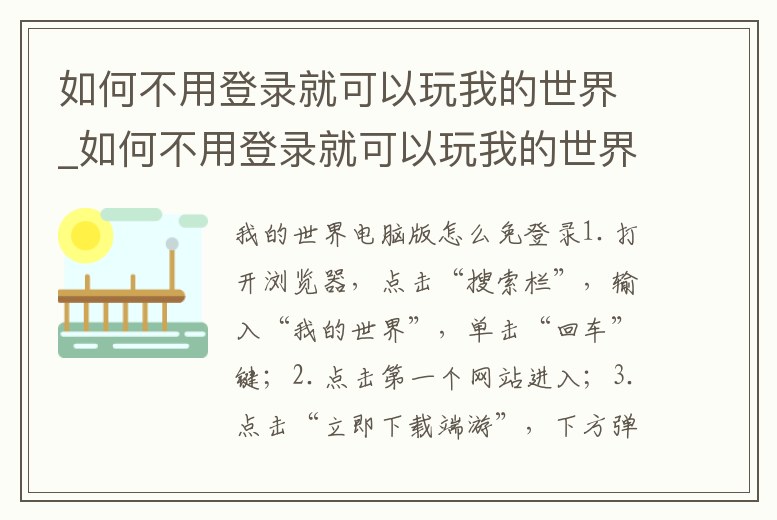 如何不用登錄就可以玩我的世界_如何不用登錄就可以玩我的世界并可加模組