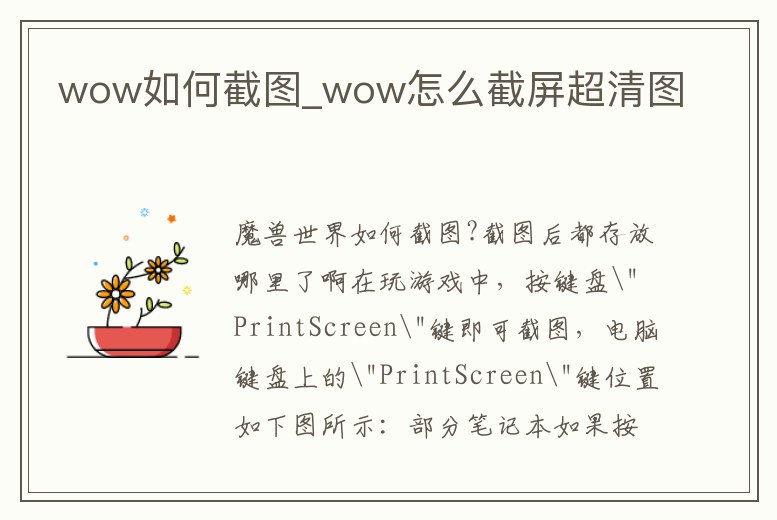 魔獸世界如何截圖?截圖后都存放哪里了啊在玩游戲中,按鍵盤"PrintScreen"鍵即可截圖,電腦鍵盤上的"PrintScreen"鍵位置如下圖所示:部分筆記本如果按PrintScreen無法截圖的話,可能需要按Fn+PrintScrn組合鍵截圖。按PrintScreen鍵進(jìn)行魔獸世界截圖后,魔獸世界會自動把。1、魔獸世界怎么截圖按PrintScre
