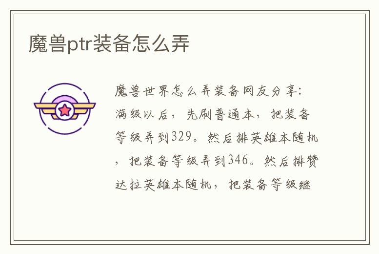 魔獸世界怎么弄裝備網(wǎng)友分享:滿級以后,先刷普通本,把裝備等級弄到329。然后排英雄本隨機(jī),把裝備等級弄到346。然后排贊達(dá)拉英雄本隨機(jī),把裝備等級繼續(xù)提高,現(xiàn)在有很多裝綁的紫色353或359裝備,有的價錢不貴,可以先買。此外,法師,也可以先學(xué)個。2、tbc剛到70級怎么弄裝備tbc剛到