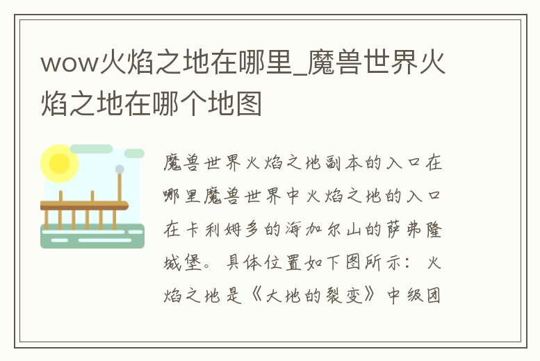wow火焰之地在哪里_魔獸世界火焰之地在哪個地圖