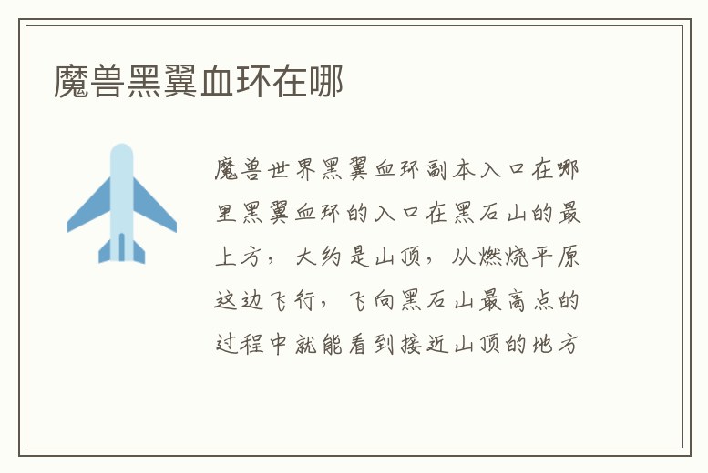 魔獸黑翼血環(huán)在哪