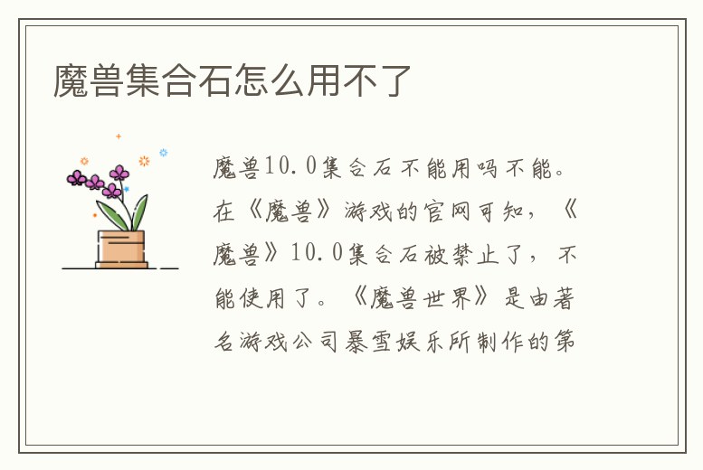 不能。在《魔獸》游戲的官網可知,《魔獸》10.0集合石被禁止了,不能使用了。《魔獸世界》是由著名游戲公司暴雪娛樂所制作的第一款網絡游戲,屬于大型多人在線角色扮演游戲。
