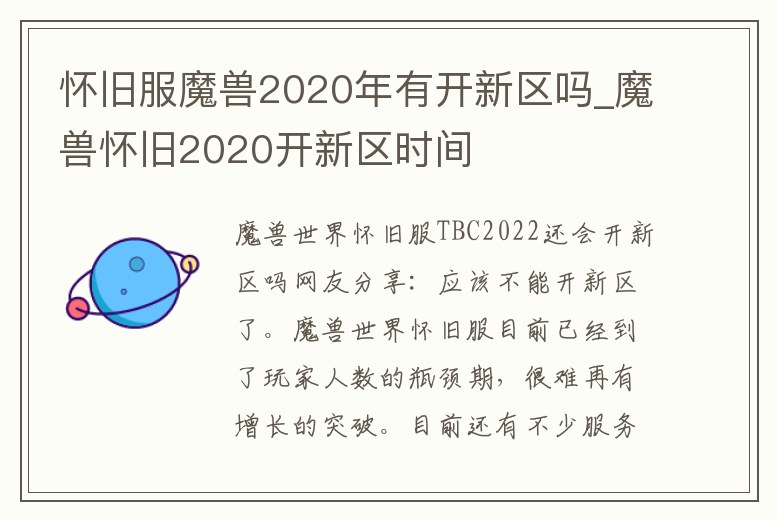懷舊服魔獸2020年有開新區嗎_魔獸懷舊2020開新區時間