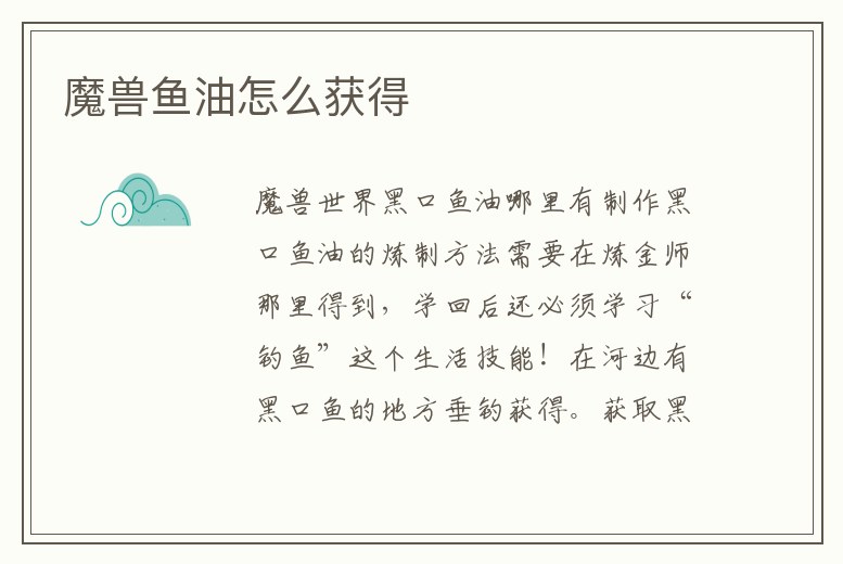 魔獸魚油怎么獲得