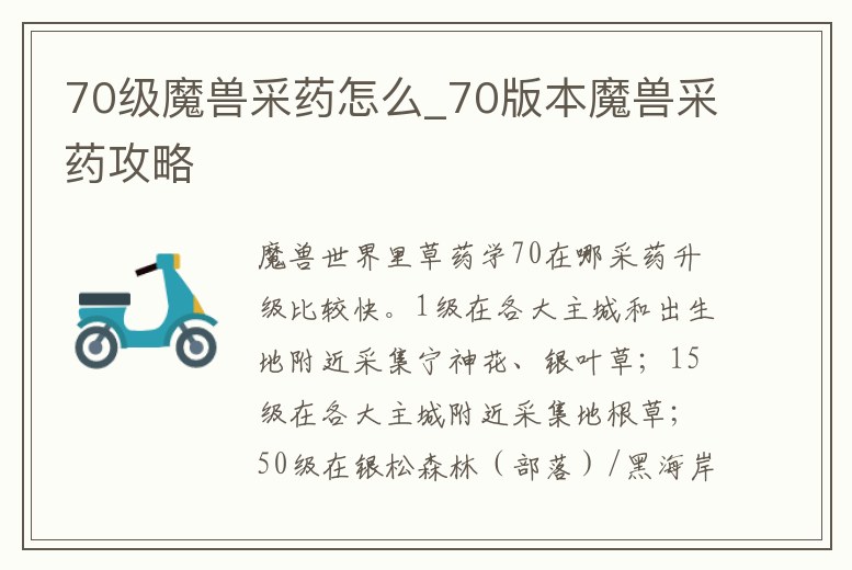 70級魔獸采藥怎么_70版本魔獸采藥攻略