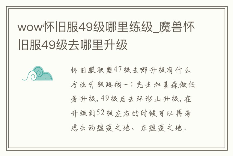 wow懷舊服49級哪里練級_魔獸懷舊服49級去哪里升級