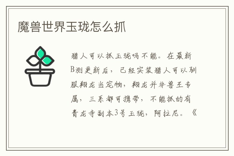 不能。在最新B測更新后,已經實裝獵人可以馴服翔龍當寵物,翔龍并非獸王專屬,三系都可攜帶,不能抓的有青龍寺副本3號玉瓏,阿拉尼。《魔獸世界》是由著名游戲公司暴雪娛樂所制作的第一款網絡游戲,屬于大型多人在線角色扮演。