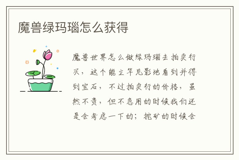 網友分享:綠瑪瑙是采礦出的,當然你學珠寶的話可以炸礦一組錫礦1G-2G之間,但一組可選4次RP好點可出3-6塊綠瑪瑙.工程學供應商一般主城里都有 就在工程學訓練師的旁邊。