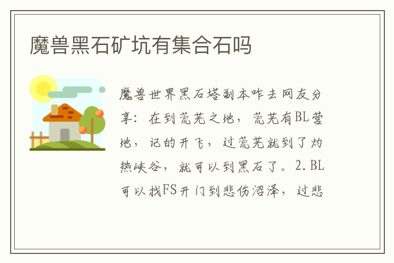 網友分享:在到荒蕪之地,荒蕪有BL營地,記的開飛,過荒蕪就到了灼熱峽谷,就可以到黑石了。2.BL可以找FS開門到悲傷沼澤,過悲傷沼澤到逆風小路 過逆風到幕色森林,在到湖畔鎮后面就是和LM第2走法一樣 LM的走法 1.可以從鐵。