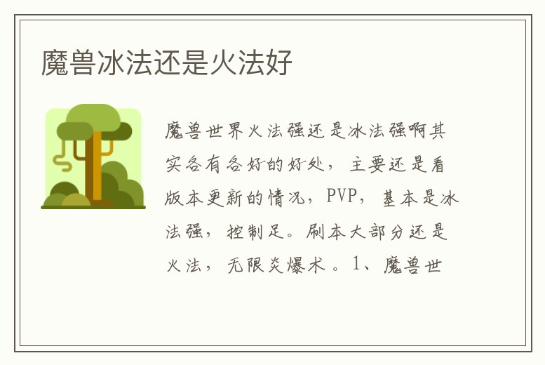 魔獸世界火法強還是冰法強啊