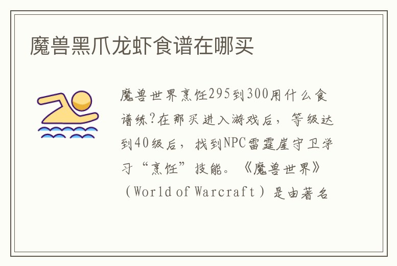 魔獸世界烹飪295到300用什么食譜練?在那買