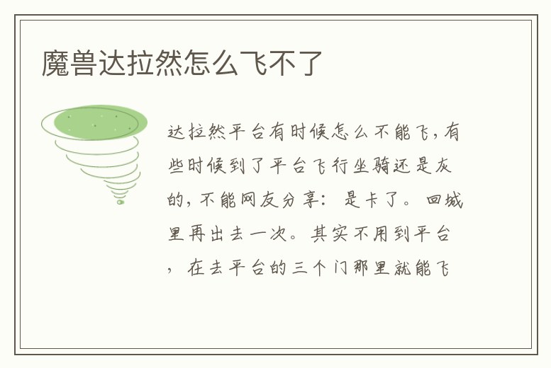 魔獸達(dá)拉然怎么飛不了
