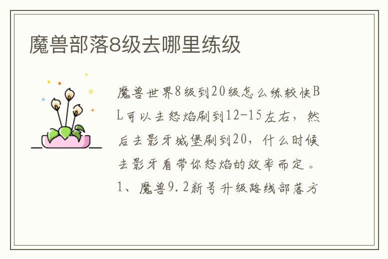 部落方快速升級路線:1-8級自行任務,8-15級去怒焰峽谷,15-25級去影牙城堡,25-45級去血色,45-58級去STSM。