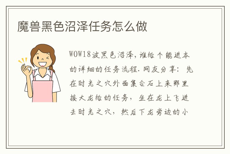 WOW18波黑色沼澤,誰給個能進本的詳細的任務流程.