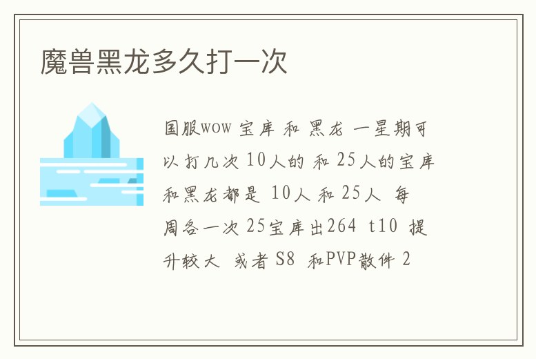 魔獸黑龍多久打一次