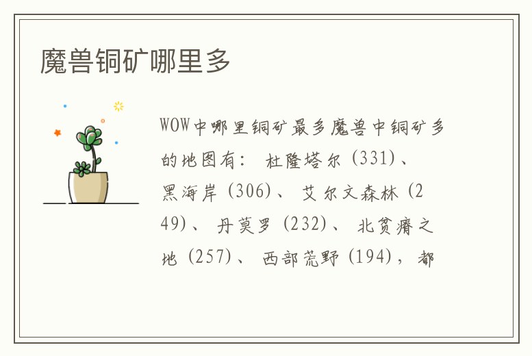 4、魔獸世界中哪里的銅礦最多