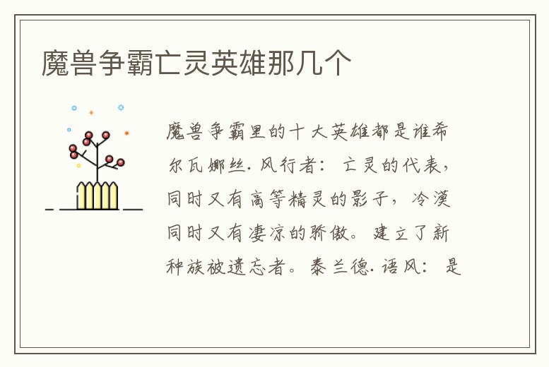 8、《魔獸爭霸3》不死族英雄的詳細介紹
