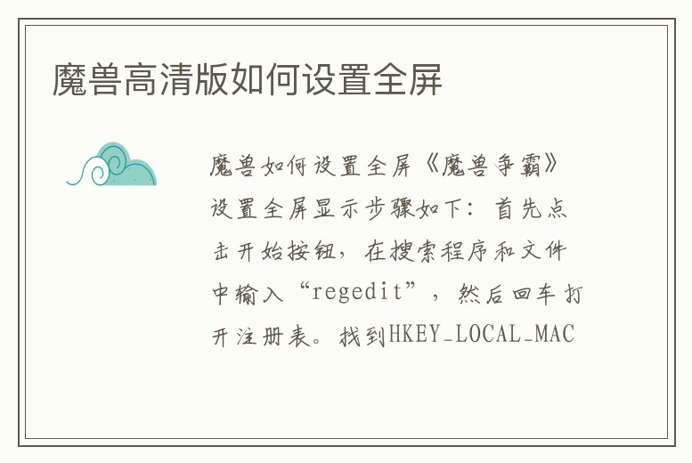 將游戲最大化,按Esc,點(diǎn)擊進(jìn)入【界面】設(shè)置。將【最大化】打√即可。筆記本上的魔獸爭霸怎么把它調(diào)成全屏 筆記本上的魔獸爭霸調(diào)整全屏:1.點(diǎn)擊程序--運(yùn)行(win+R),輸入regedit,打開注冊表。2.找到路徑HKEY_CURRENT_。