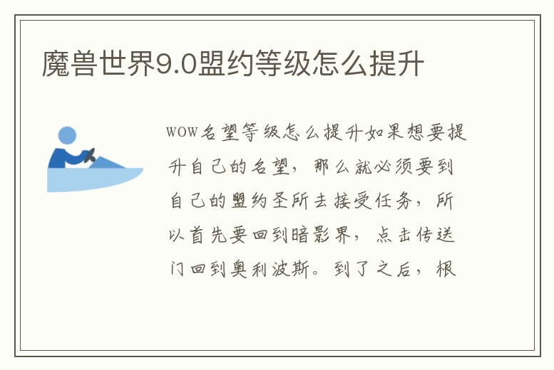 wow名望等級怎么提升如果想要提升自己的名望,那么就必須要到自己的盟約圣所去接受任務,所以首先要回到暗影界,點擊傳送門回到奧利波斯。到了之后,根據盟約圣所的位置點擊飛行點,飛到指定的地圖。以法夜為例,想要前往就需要到達這個。1、魔獸世界9.0名望怎么提升名望快速提升技巧我們如果想要提升自己的名望,那么就必須要到自己的盟約圣所去接受任務,所以首先要回到暗影界,點擊傳送門回到奧利波斯。請點
