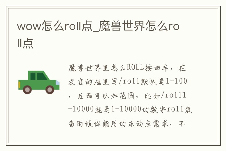 wow怎么roll點(diǎn)_魔獸世界怎么roll點(diǎn)