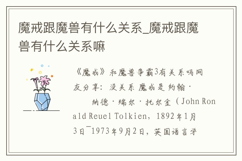 網友分享:沒關系 魔戒是 約翰·羅納德·瑞爾·托爾金(John Ronald Reuel Tolkien,1892年1月3日~1973年9月2日, 英國語言學家、作家創作了奇幻小說《魔戒》三部曲,構建起了其獨特的中土世界。 后改編成電影和游戲 魔獸是暴雪推出。