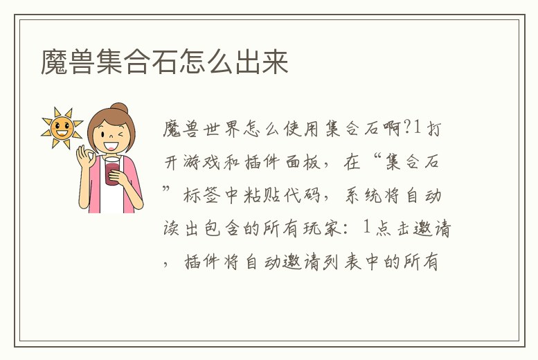 游戲中的集合石是用來幫助組隊或團隊活動的玩家集合用的,在各副本的入口附近都有集合石。當玩家的目標選中一個隊友的時候,右鍵點擊集合石就可以打開一個不成形的傳送門,之后在你附近的隊友可以點擊傳送門并使之成型,這樣就。