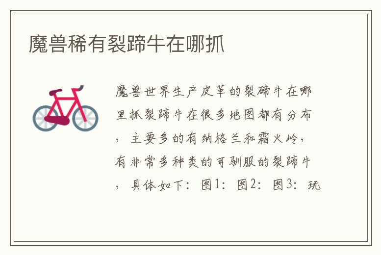 魔獸稀有裂蹄牛在哪抓