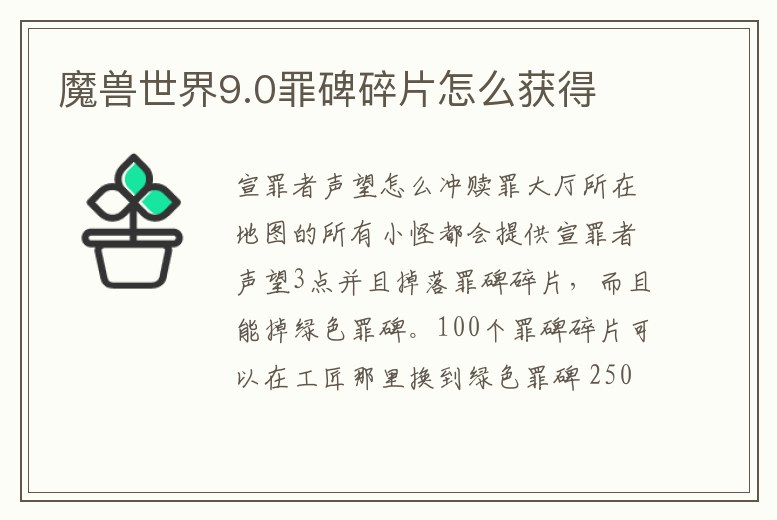 魔獸世界9.0罪碑碎片怎么獲得