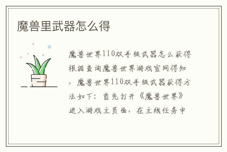 根據查詢魔獸世界游戲官網得知,魔獸世界110雙手級武器獲得方法如下:首先打開《魔獸世界》進入游戲主頁面,在主線任務中可獲得。或在游戲地圖中可獲得。