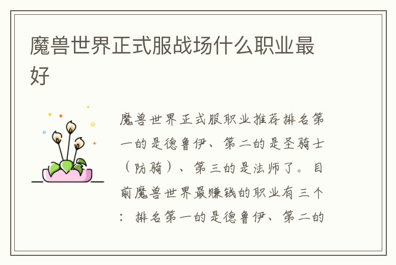 魔獸世界正式服戰(zhàn)場(chǎng)什么職業(yè)最好