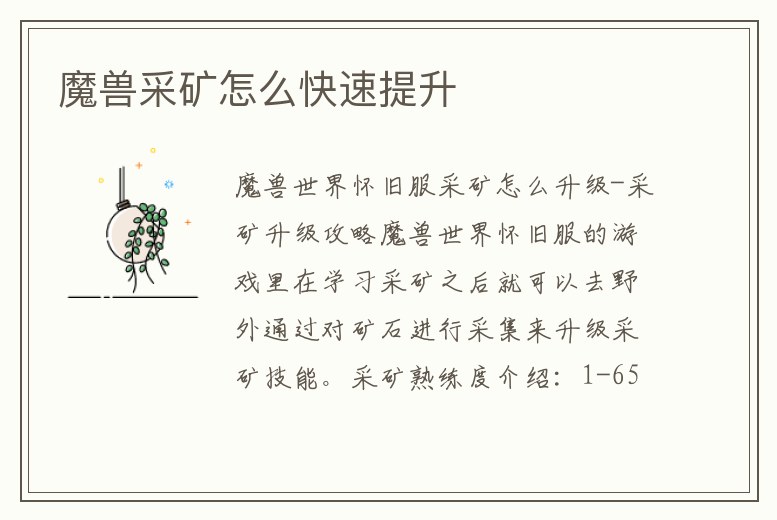 魔獸世界懷舊服采礦怎么升級-采礦升級攻略