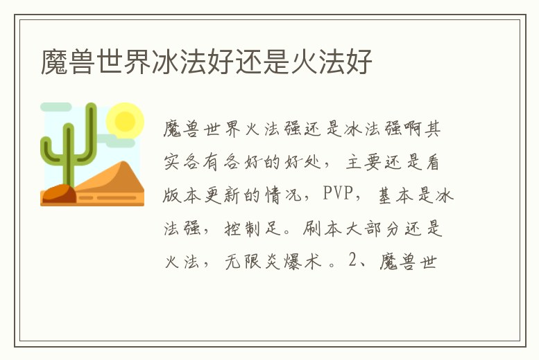 8、魔獸世界 法師冰系和火系哪個好?詳細點