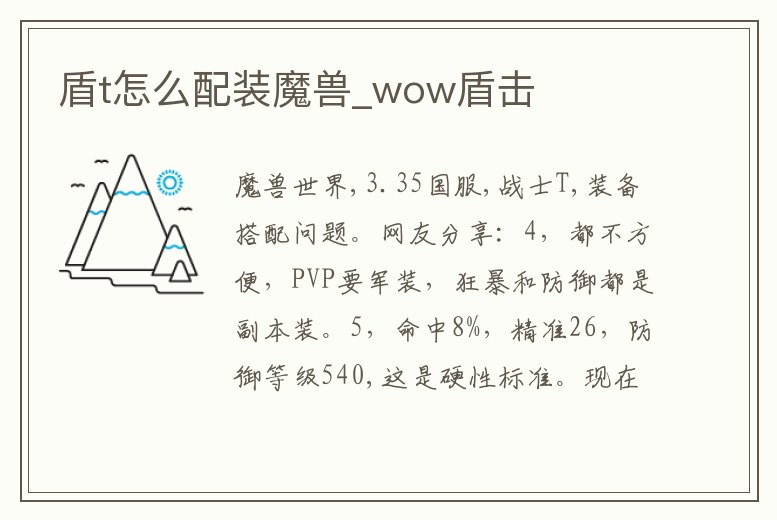 魔獸世界,3.35國服,戰士T,裝備搭配問題。