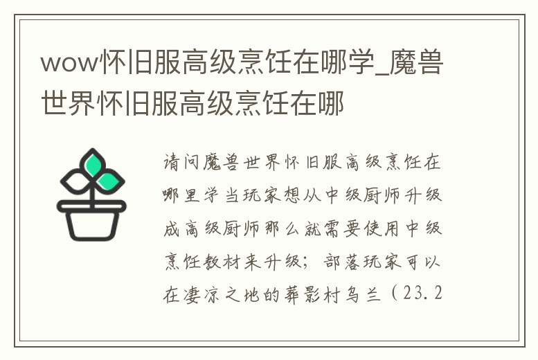 wow懷舊服高級烹飪在哪學_魔獸世界懷舊服高級烹飪在哪