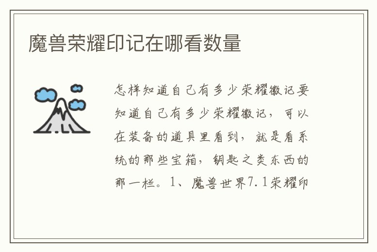 魔獸榮耀印記在哪看數量