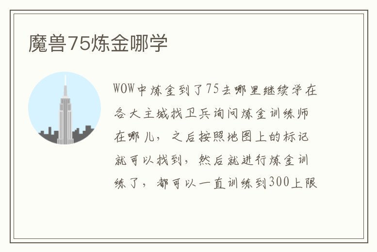 WOW中煉金到了75去哪里繼續學