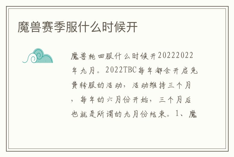 2022年九月。2022TBC每年都會(huì)開啟免費(fèi)轉(zhuǎn)服的活動(dòng),活動(dòng)維持三個(gè)月,每年的六月份開始,三個(gè)月后也就是所謂的九月份結(jié)束。