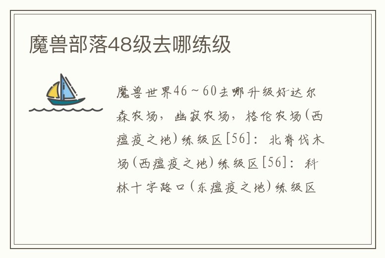 2、魔獸世界部落獵人48級了,能去哪里練級